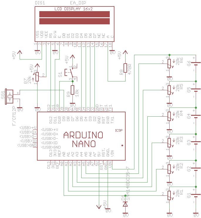 #include #define DEBUG struct _Batterie LiquidCrystal lcd(12, 11, 5, 4, 3, 2); // initialize the library with the numbers of the interface pins #define NEIN 0 // Taste nicht gedrückt // ——————————- // ——————————- for(i=0; i<6 br="" i=""> Batterien[i].abschaltspannung = 0.1F; // ——————————- aval = analogRead(AnalogBatPin1); // ——————————- if(Batterien[0].ausgetastet) if(Batterien[3].ausgetastet) lcd.setCursor(0, 0); // ——————————- gedrueckt = digitalRead(TasterPin); if (gedrueckt) letztes_gedrueckt = gedrueckt; // SERIAL_PRINT(anfang); return tasterGedrueckt; // ——————————- for(i=0; i<6 br="" i=""> { // ——————————- jetzt = millis(); if ((jetzt-jedeSekunde) > 1000) SekundenBlinkbit = ~SekundenBlinkbit; if ((jetzt-jedeHalbeSekunde) > 500) Slot++; SERIAL_PRINTLN(Slot); HalbsekundenBlinkbit = ~HalbsekundenBlinkbit; if ((jetzt-jedeViertelSekunde) > 250) ViertelsekundenBlinkbit = ~ViertelsekundenBlinkbit;